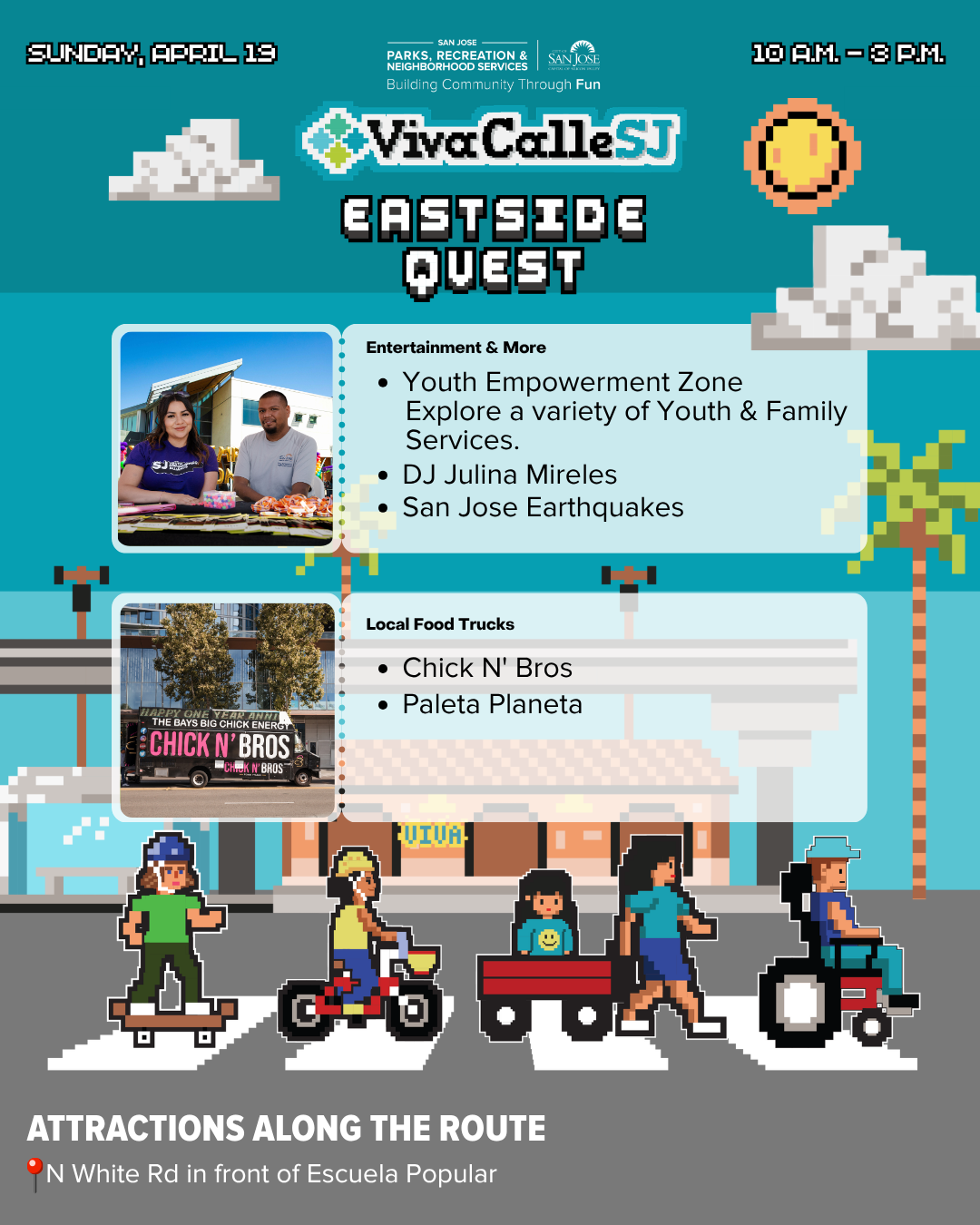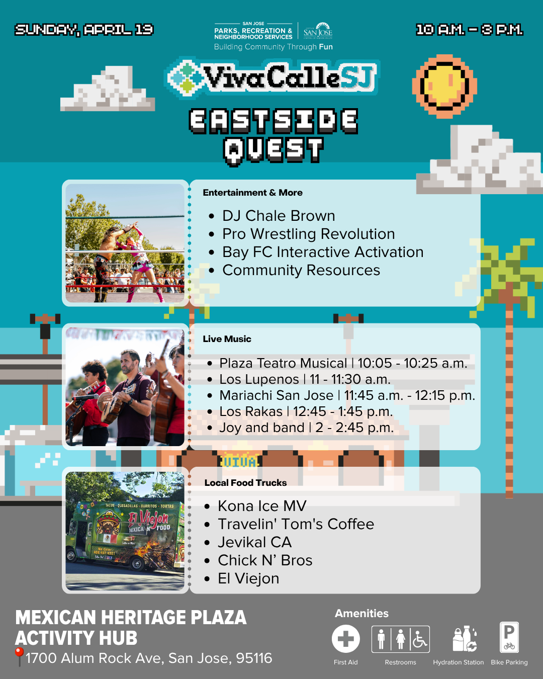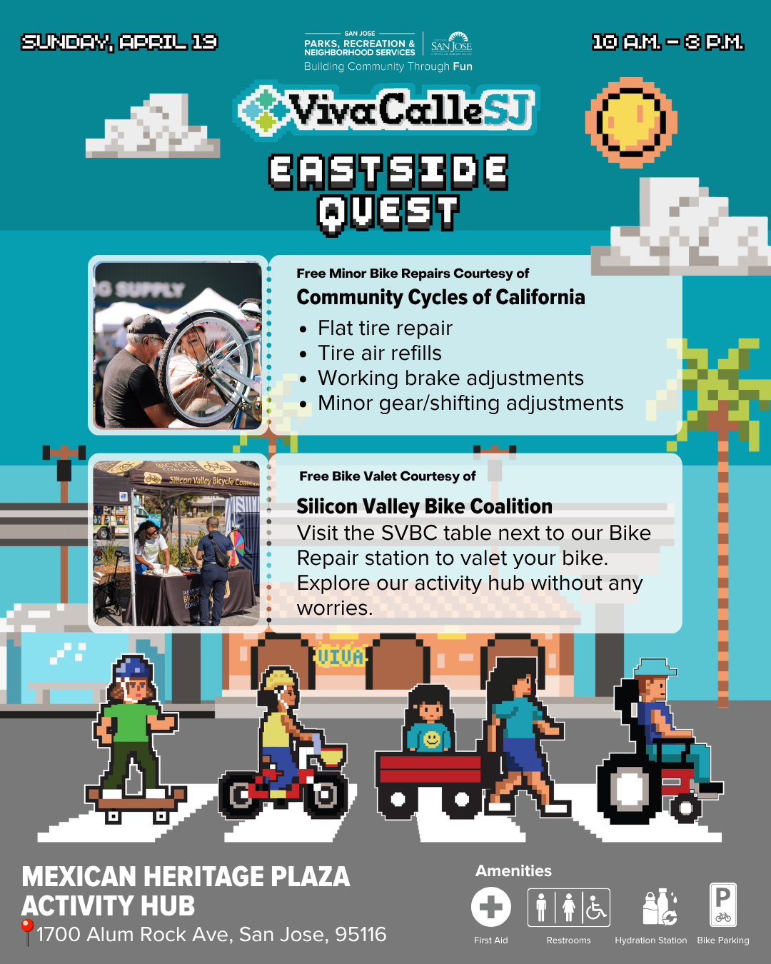 Choose your own quest as you bike, skate, walk, or roll from Mexican Heritage Plaza to Alum Rock Village
